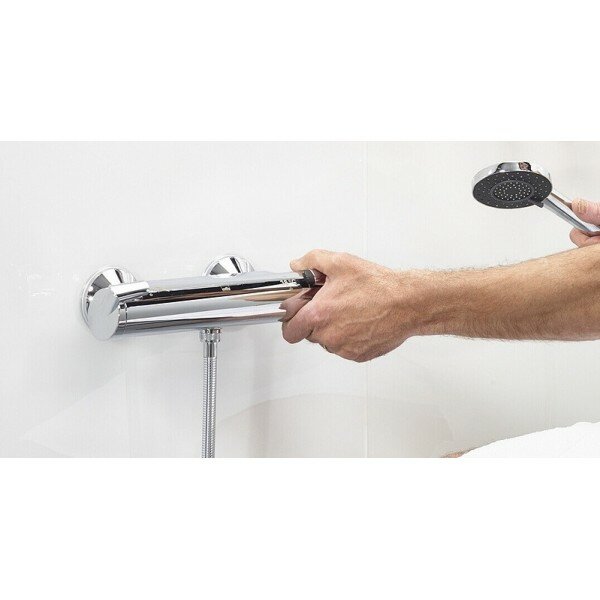 - Вполне выполняет свою функцию, незаметно для меня парирует перепады давления в магистралях и льет на меня воду строго заданной температуры и напора. Ручку регулировки температуры трогаю крайне редко, один раз выставили комфортную и всё!