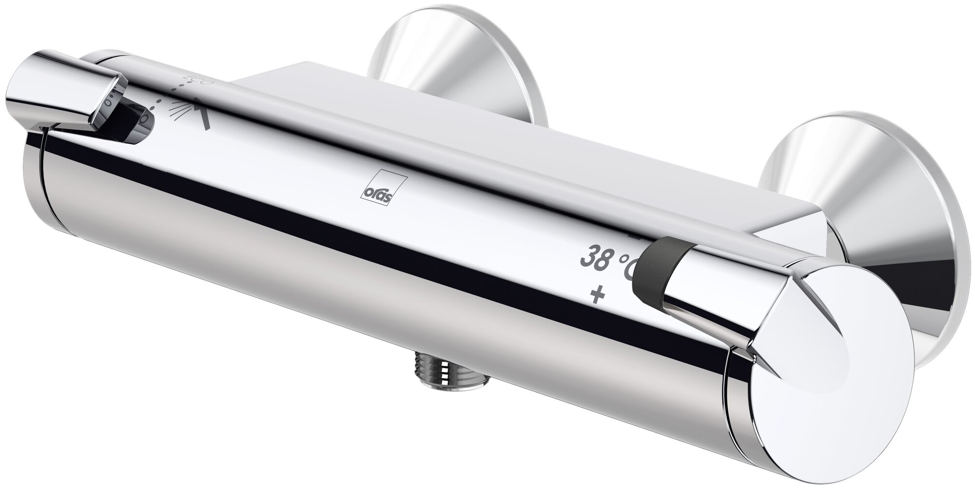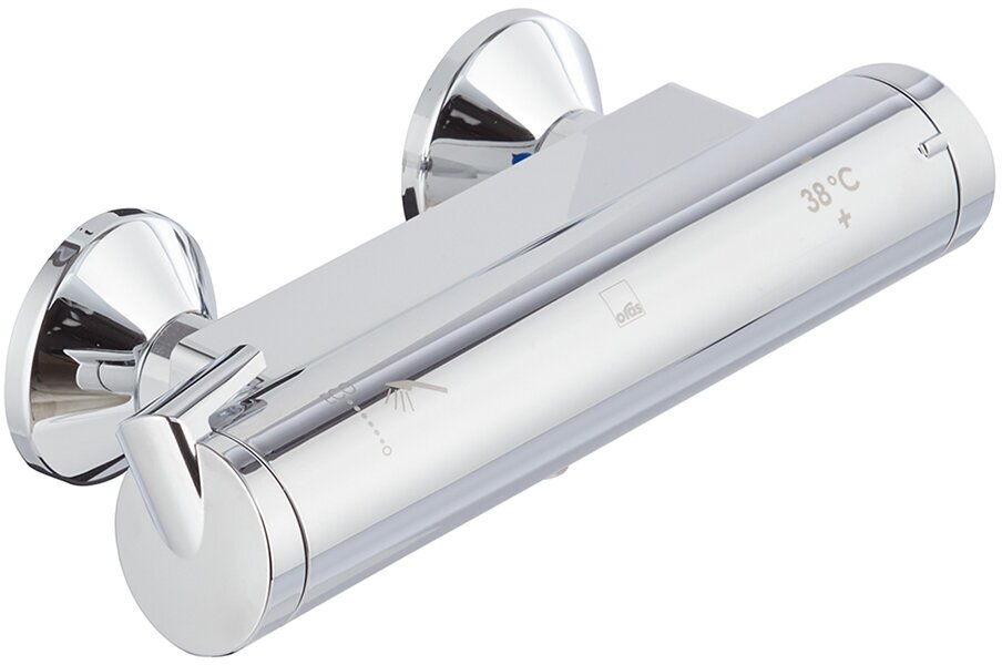 Термостат для душа Optima. с удобными рукоятками, ограничитель температуры воды на рукоятке, контроль за расходом воды в режиме EcoFlow, в комплект входят эксцентриковые соединители, декоративные розетки, грязевые фильтры и обратные клапаны.