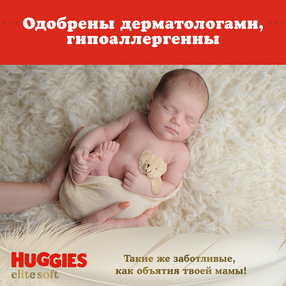 Новые умные подгузники Huggies Elite Soft для новорожденных со специальной впитывающей зоной и мягкими подушечками — это подгузники, созданные для первых месяцев жизни малыша. Благодаря специальной зоне подгузник впитывает за секунды, а мягкие подушечки обеспечивают комфорт и отсутствие раздражения на нежной и чувствительной коже новорожденных.