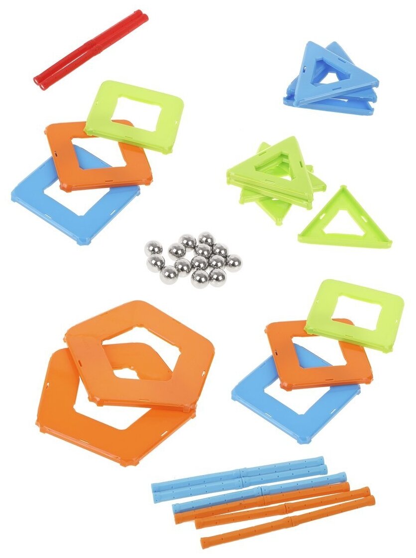 Детали легко соединяются под любым углом и в любом направлении. Из них можно смастерить как классические геометрические фигуры, так и фантазийные постройки.