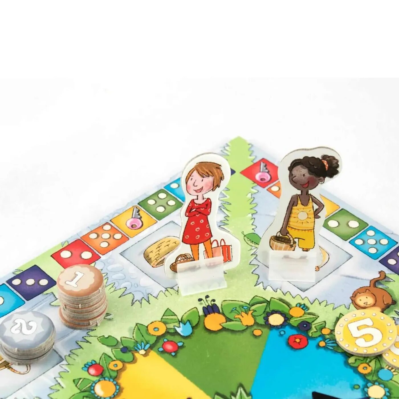 | Состав набора | игровое поле, 4 фигурки, 4 чипа(карточки), 1 стрелка, 8 магазинов (картонок), 4 пластины, 44 монеты(жетончиков), правила игры |