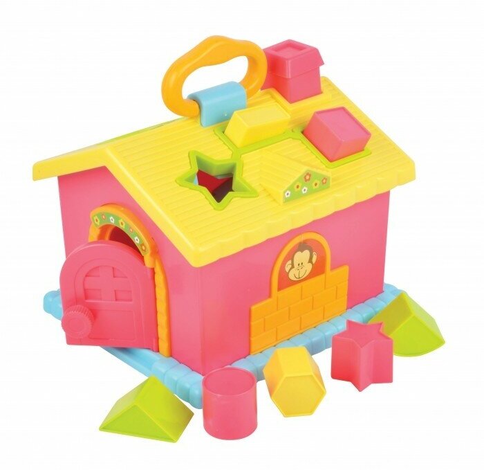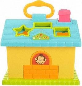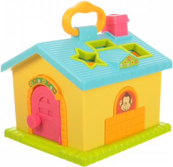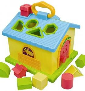 На крыше дома расположены фигурные отверстия, с помощью которых нужно поместить в определенные фигуры.