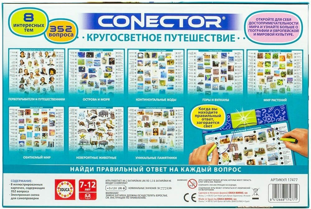 Игра Educa Электровикторина Кругосветное путешествие. Электровикторина Educa — это увлекательная игра в вопросы и ответы, которая расширит кругозор ребенка. 352 вопроса на различные вопросы, связанные с темой: кругосветное путешествие. Откройте для себя достопримечательности мира и узнайте больше о географии
