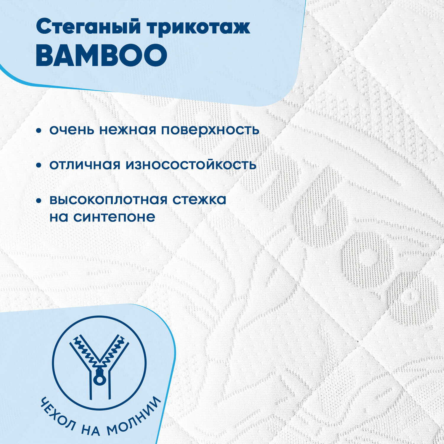 Чехол из стеганый трикотаж Bamboo на молнии. Ткань мягкая и приятная на ощупь, что важно для нежной кожи младенца. Чехол легко снимается для удаления загрязнений.