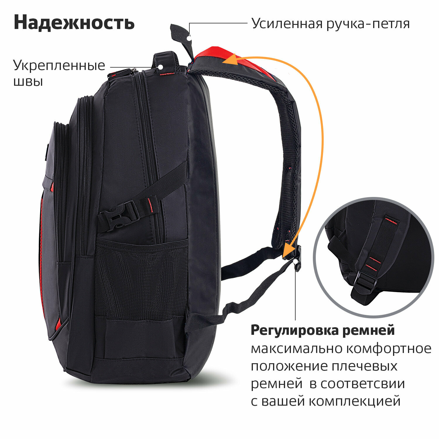 - Прочная и мягкая эргономичная ручка позволяет комфортно носить рюкзак не только на спине, но и в руках.