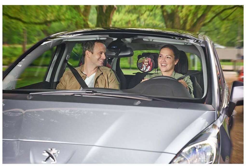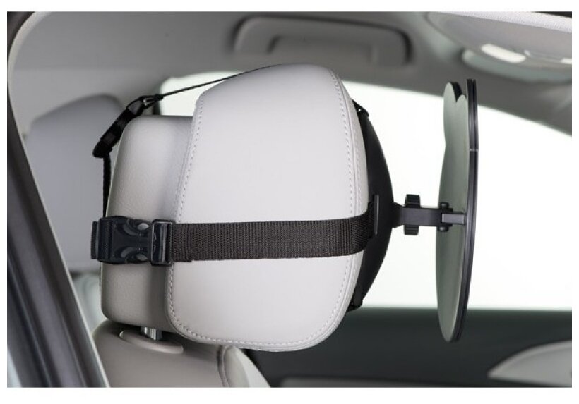 Зеркало отлично служит, много степеней регулировки. В первый раз надевала его трясущимися руками пока ребенок орал в автокресле, и все равно одела нормально, держится хорошо;) легко поправить угол наклона.