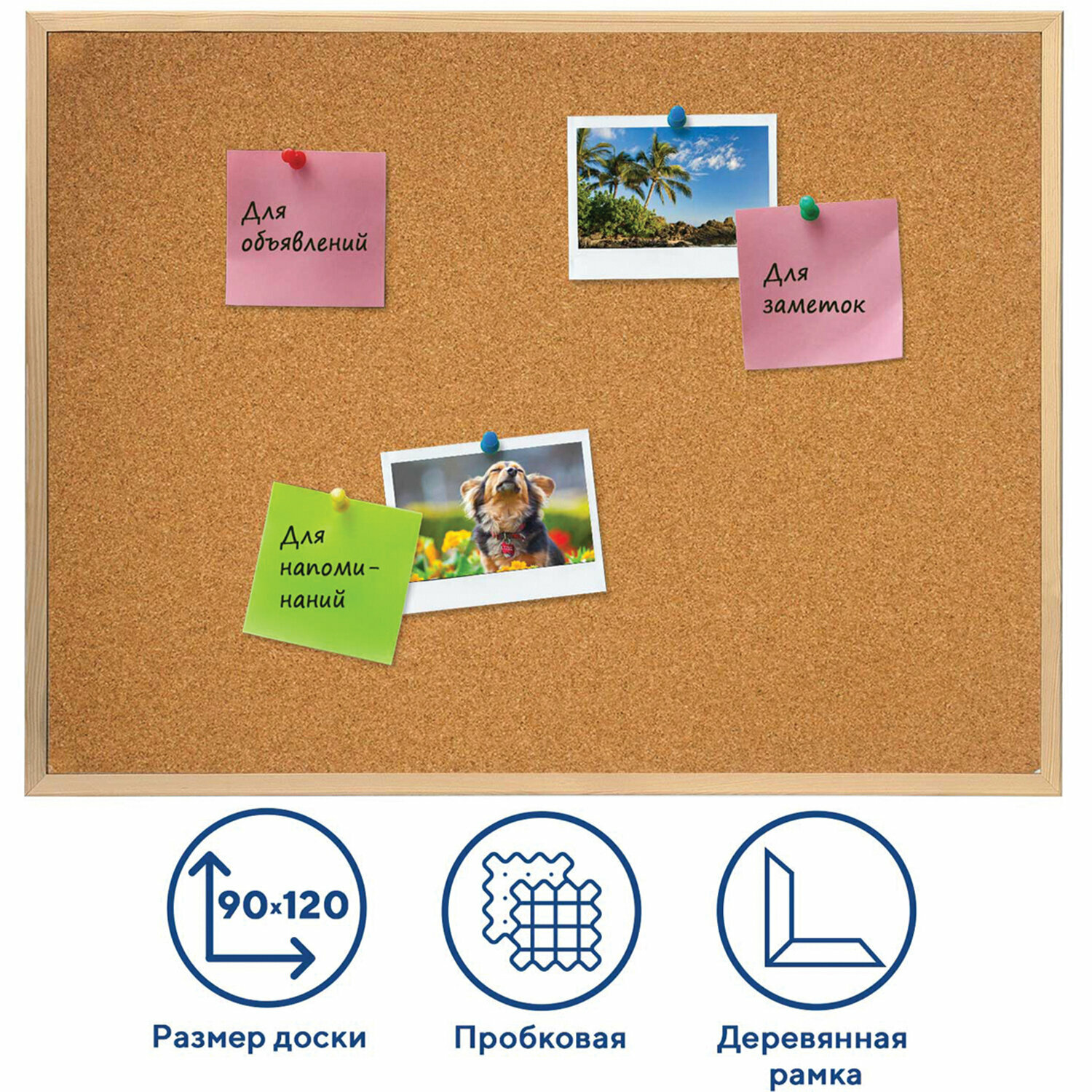 Демонстрационная доска Brauberg пробковая 90x120см пробка (коричневый)/дерево (бежевый) (236861) Доска пробковая деревянная рамка 90х120 см