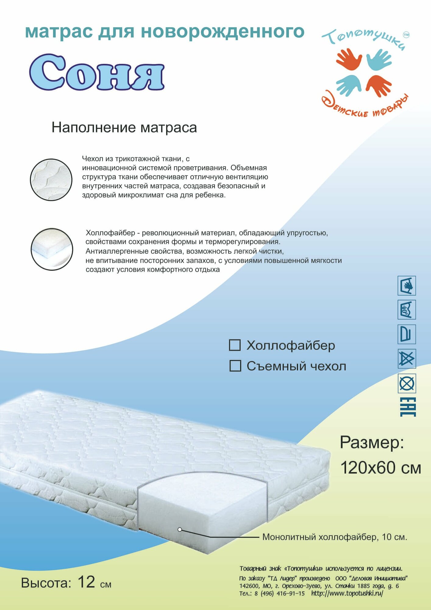 Матрас Топотушки Соня 119х60, трикотаж