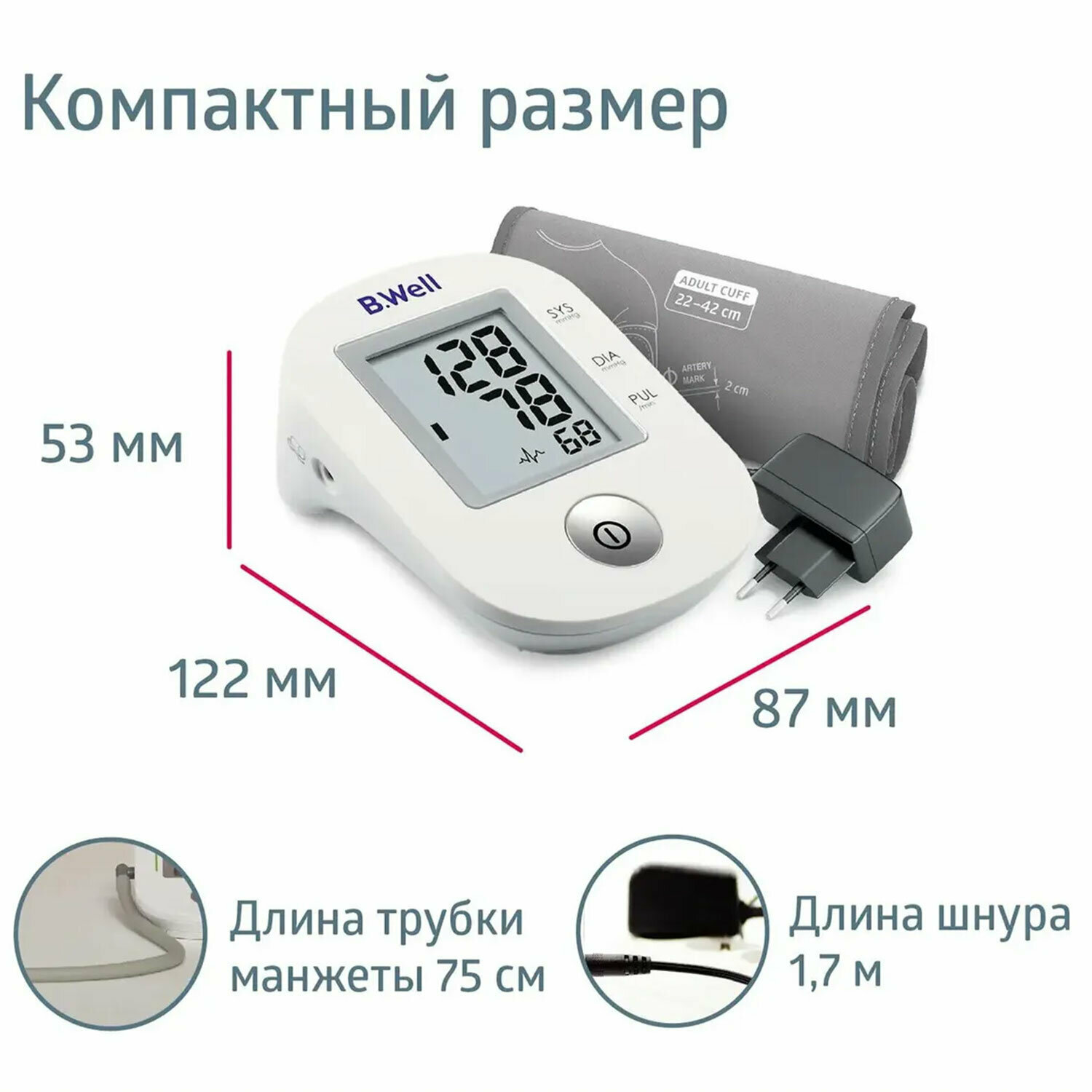 Тонометр автоматический B.Well (с адаптером питания) 22-42см Тонометр PRO-33 (манжета M-L) адаптер индикатор аритмии