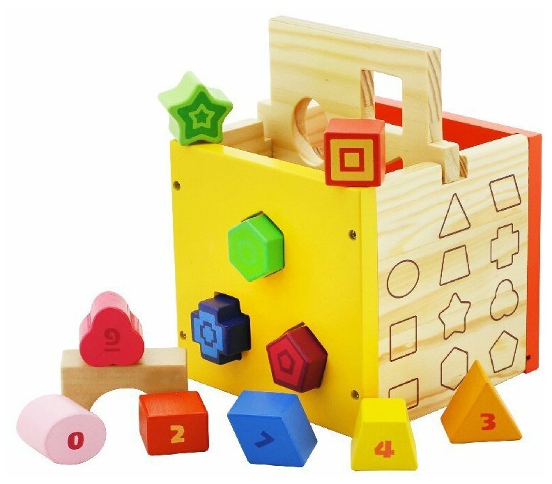 С помощью куба-сортера ребенок научится различать формы, цвета и цифры. Деревянная игрушка-сортер помогает развивать мелкую моторику, память и логику.