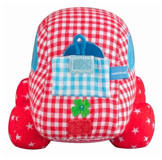 Игрушка Baby Gluck для самых маленьких автомобилистов. Выполнена из хлопка с наполнением полиэстер. Яркая клетчатая машинка имеет багажник на липучке, в котором находится веревочка, потянув за нее малыш приведет ее в движение.