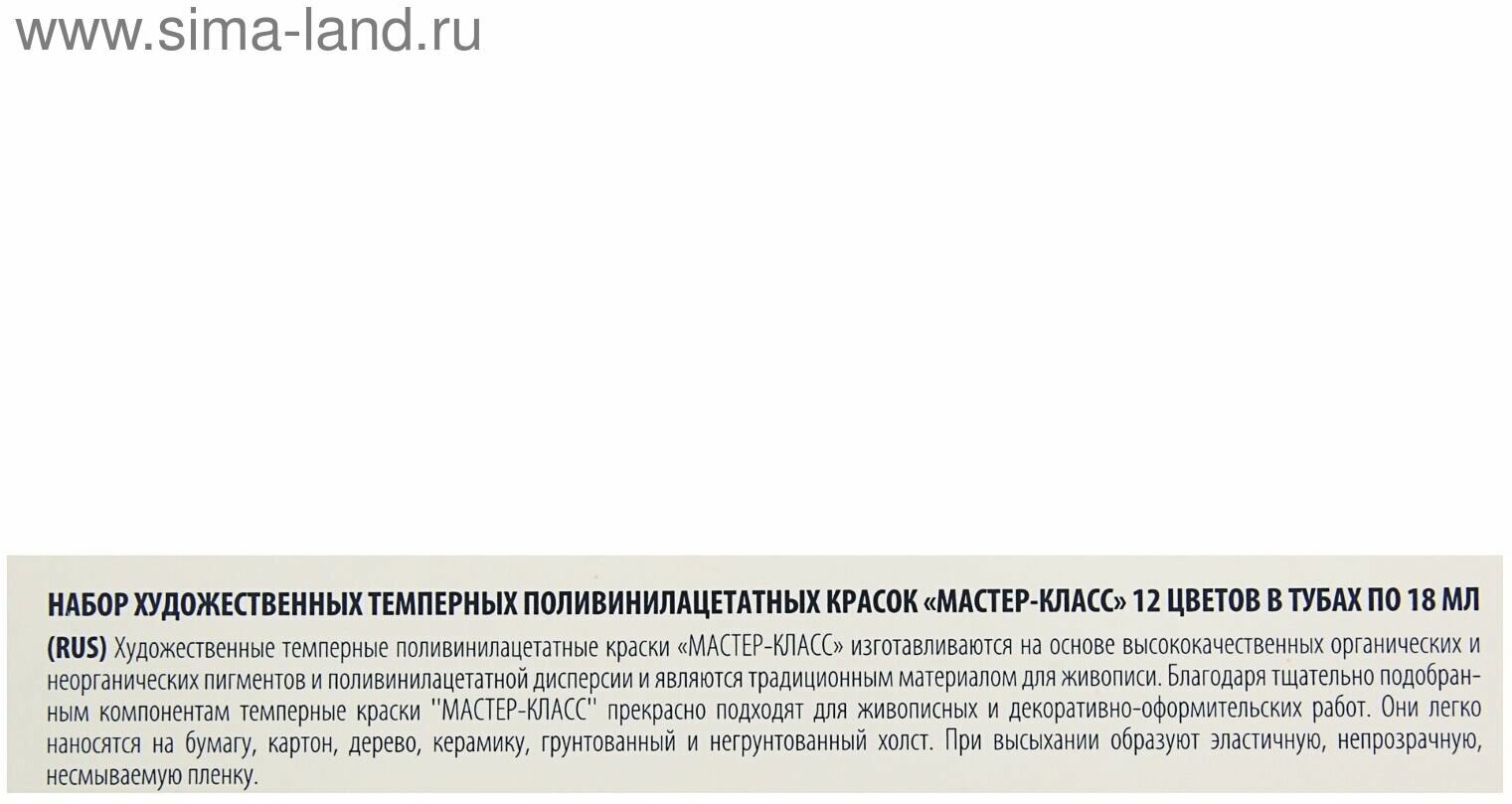 Модель: Мастер-Класс Краски темперные ПВА 12 цветов туба 18 мл