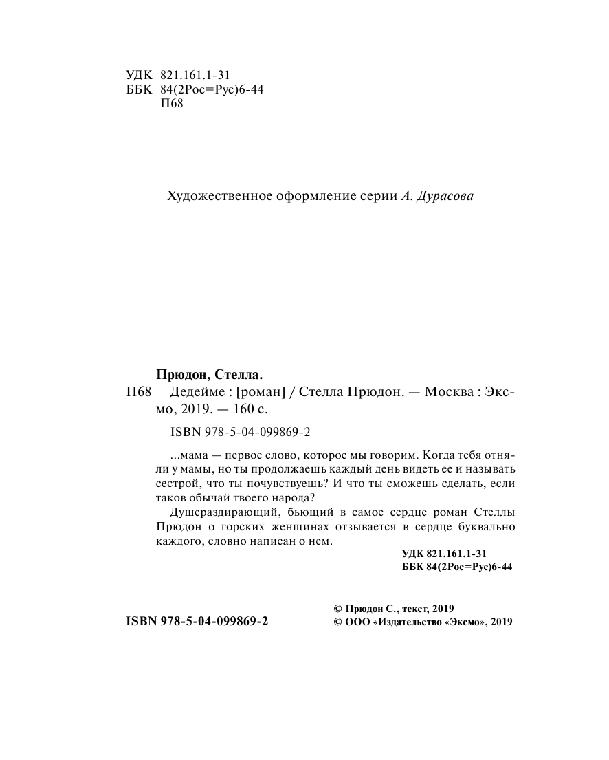 Книга: Дедейме (Стелла Прюдон); Эксмо, Редакция 1, 2019