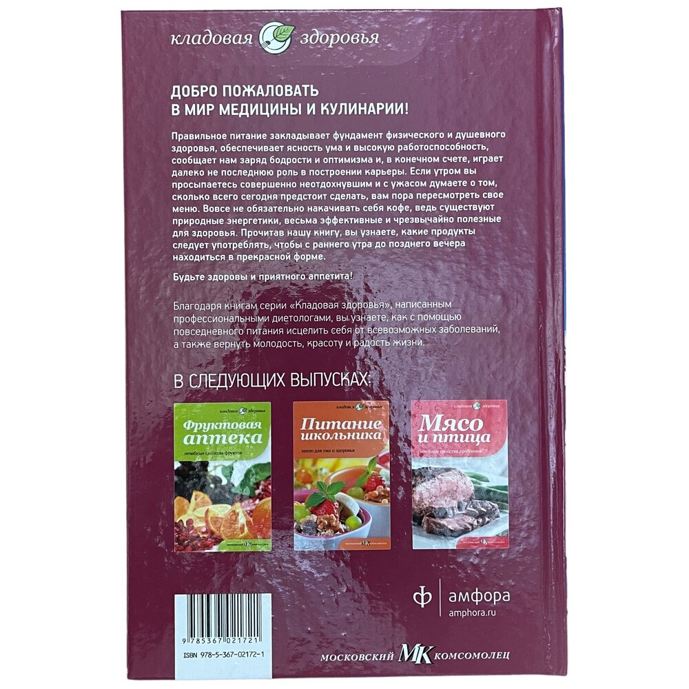 Правильное питание закладывает фундамент физического и душевного здоровья, обеспечивает ясность ума и высокую работоспособность, сообщает нам заряд бодрости и оптимизма и, в конечном счете, играет далеко не последнюю роль в построении карьеры. Если утром вы просыпаетесь совершенно не отдохнувшим и с ужасом думаете о том, сколько всего сегодня предстоит сделать, вам пора пересмотреть свое меню. Вовсе не обязательно накачивать себя кофе, ведь существуют природные энергетики, весьма эффективные и чрезвычайно полезные для здоровья. Прочитав нашу книгу, вы узнаете, какие продукты следует употреблять, чтобы с раннего утра до позднего вечера находиться в прекрасной форме. Будьте здоровы и приятного аппетита!