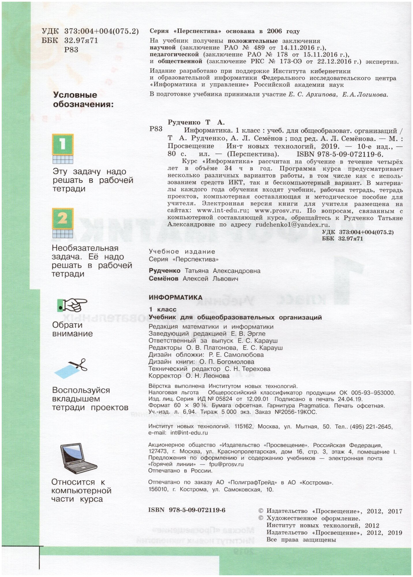 Сервис сравнения цен СкидкаГИД предлагает сравнить цены на товар «Книга: Информатика. 1 класс. Учебник. (Рудченко Татьяна Александровна, Семенов Алексей Львович); Просвещение, 2019»