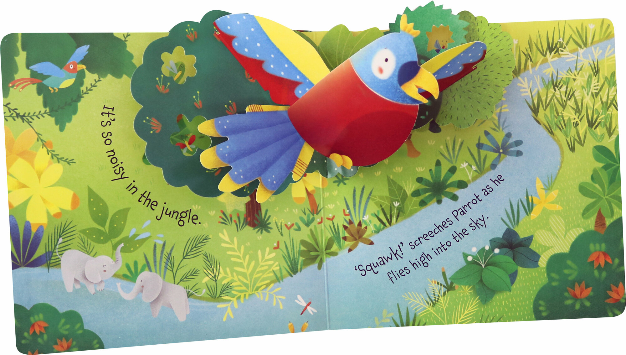 Creep through the dense undergrowth of the jungle to discover a whole menagerie of exotic animals, just waiting to leap off the pages of this busy pop-up book. Illustrations are brought to live in a riot of colour and detail as you turn each page to see a 3-dimensional scene emerge.