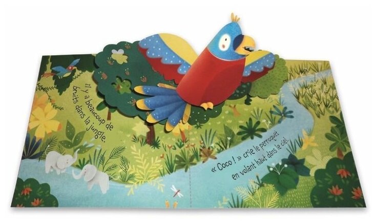 See monkey swing, Snake slither, Parrot fly, Crocodile snap and Tiger pounce as you open the pages of this delightful pop-up book.