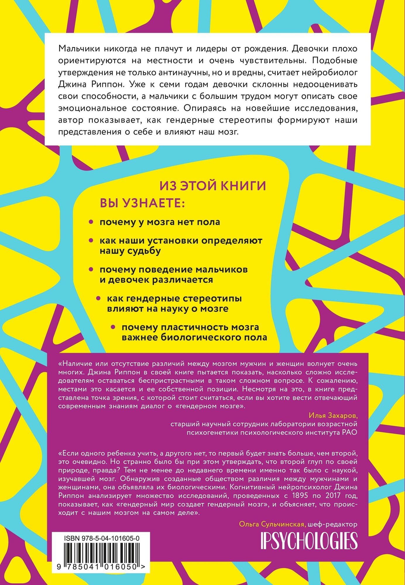 Прочитала книгу Джины Риппон «Гендерный мозг. Современная нейробиология развенчивает миф о женском мозге.». Эта книга произвела на меня хорошее впечатлением. Автор рассматривает как историю, так и современное состояние исследований мозга по половым различиям, а также с точки зрения психологии. Интересно было прочитать и узнать о том, что у мужского и женского мозга нет особых биологических отличий. Всем советую почитать))