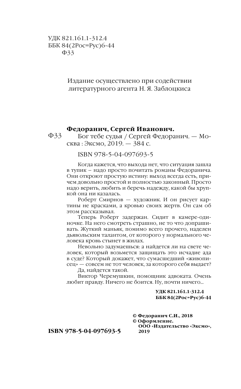 Книга: Бог тебе судья (Федоранич Сергей Иванович); ООО "Издательство "Эксмо", 2019