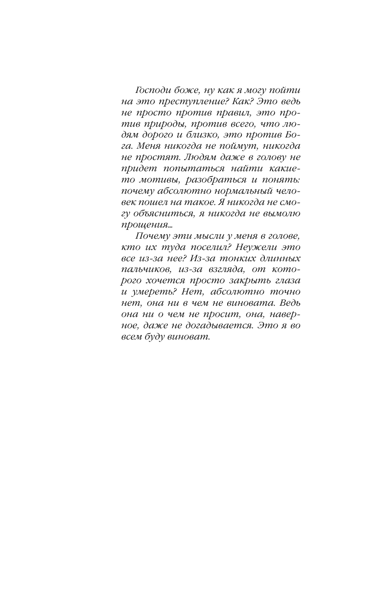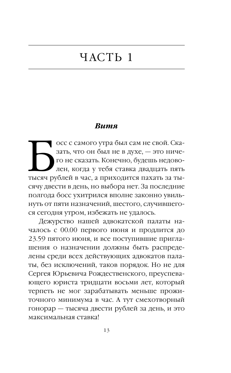 Не смотря на некоторые неправдоподобность и наигранность сюжета, роман читается легко. О прочтении не жалею, но перечитывать не буду. Слишком всего в избытке: гора трупов, маньяк-художник, рисующий свои картины фрагментами человеческих тел, община, построенная на доктрине здорового образа жизни и превратившаяся в секту. Много рассуждений о смертной казни и ее правомерности, юридических тонкостей ведения уголовных дел. Главный герой, помощник адвоката Виктор Черемушкин помимо расследования должен сделать трудный выбор, как поступить со своей жизнью: продолжать следовать чувству долга по отношению к своей сошедшей с ума жены или начать жизнь без нее. Интересный автор. Я думаю, должно быть продолжение.