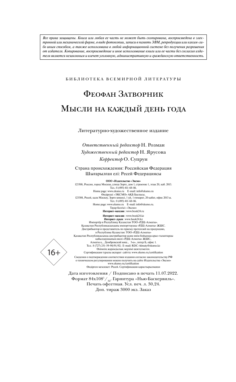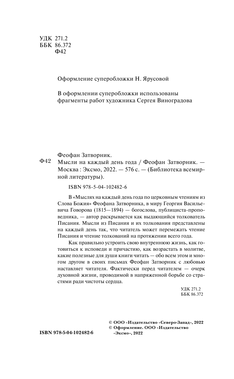 Мысли на каждый день года (Георгий Васильевич Феофан Затворник (Говоров)); Эксмо, 2022