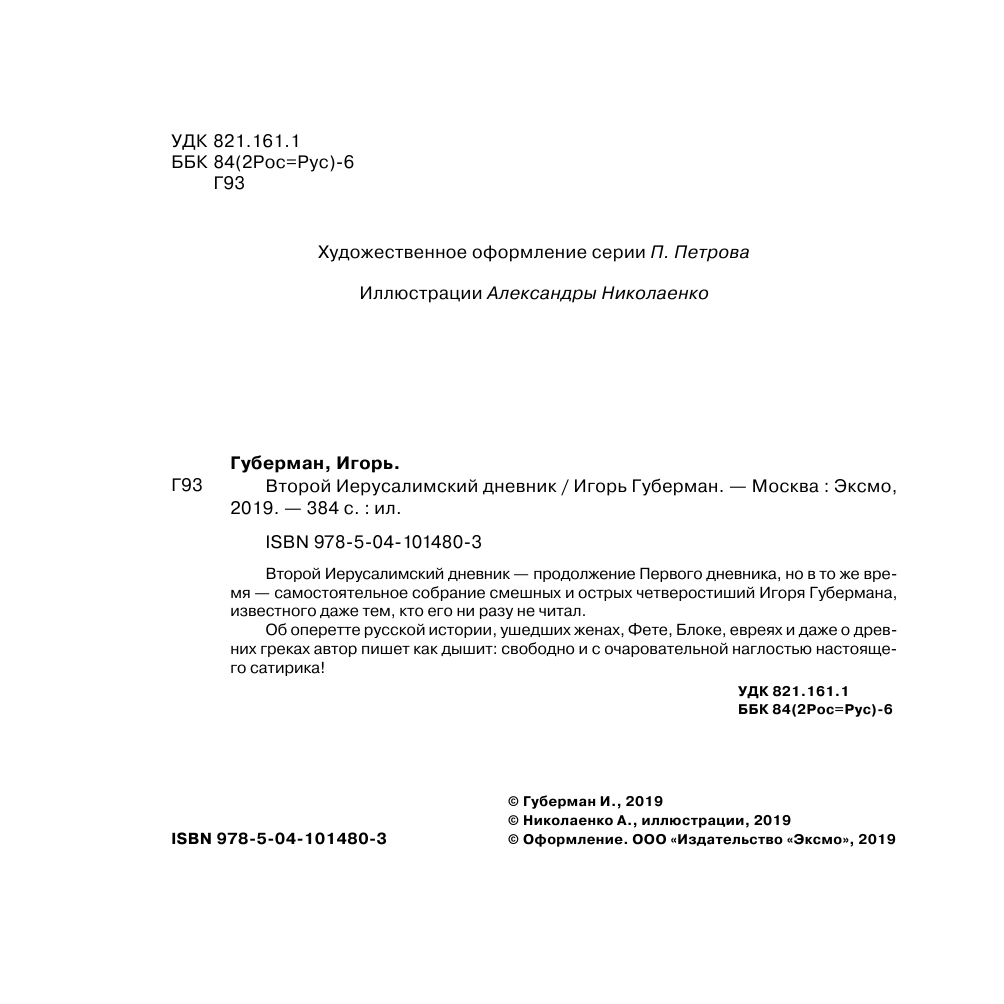 Второй Иерусалимский дневник (Губерман Игорь Миронович); ООО "Издательство "Эксмо", 2019