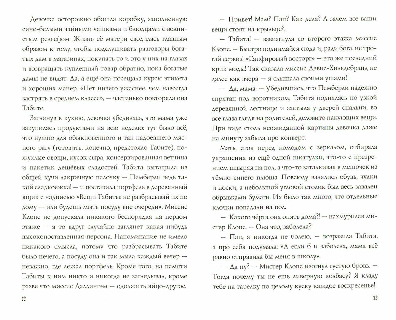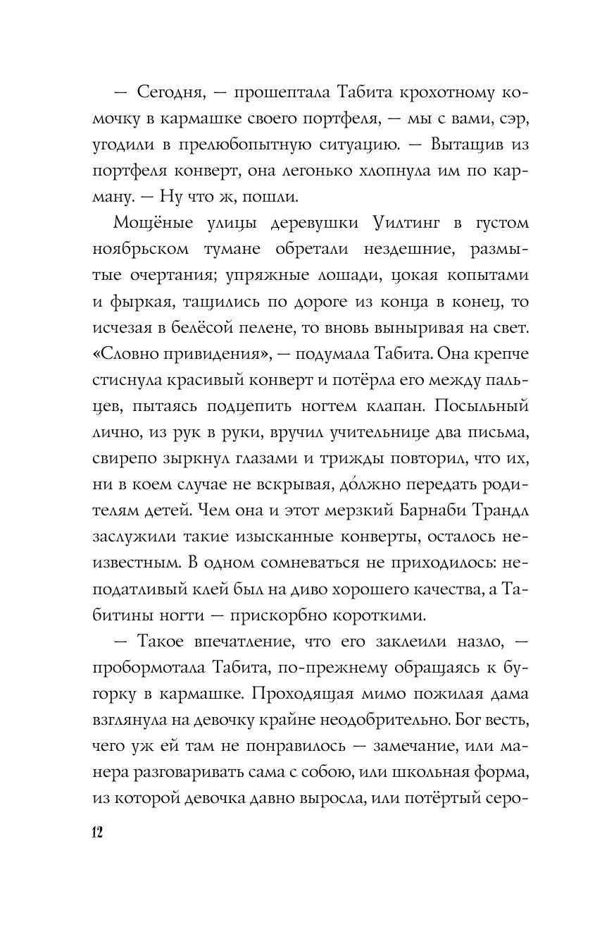 Отличный детский детектив, который будет интересен и взрослым читателям. Заметенная снегом старая усадьба, шестеро детей, приглашенных эксцентричной хозяйкой, настоящие или вымышленные привидения, тайны и заговоры. Плюс ко всему - симпатичная неунывающая героиня Табита, увлеченная детективными романами. Именно ей предстоит быть Холмсом этой истории, а вот Ватсон у нее весьма необычный - это ручной мышонок Пемберли, единственный друг девочки.
