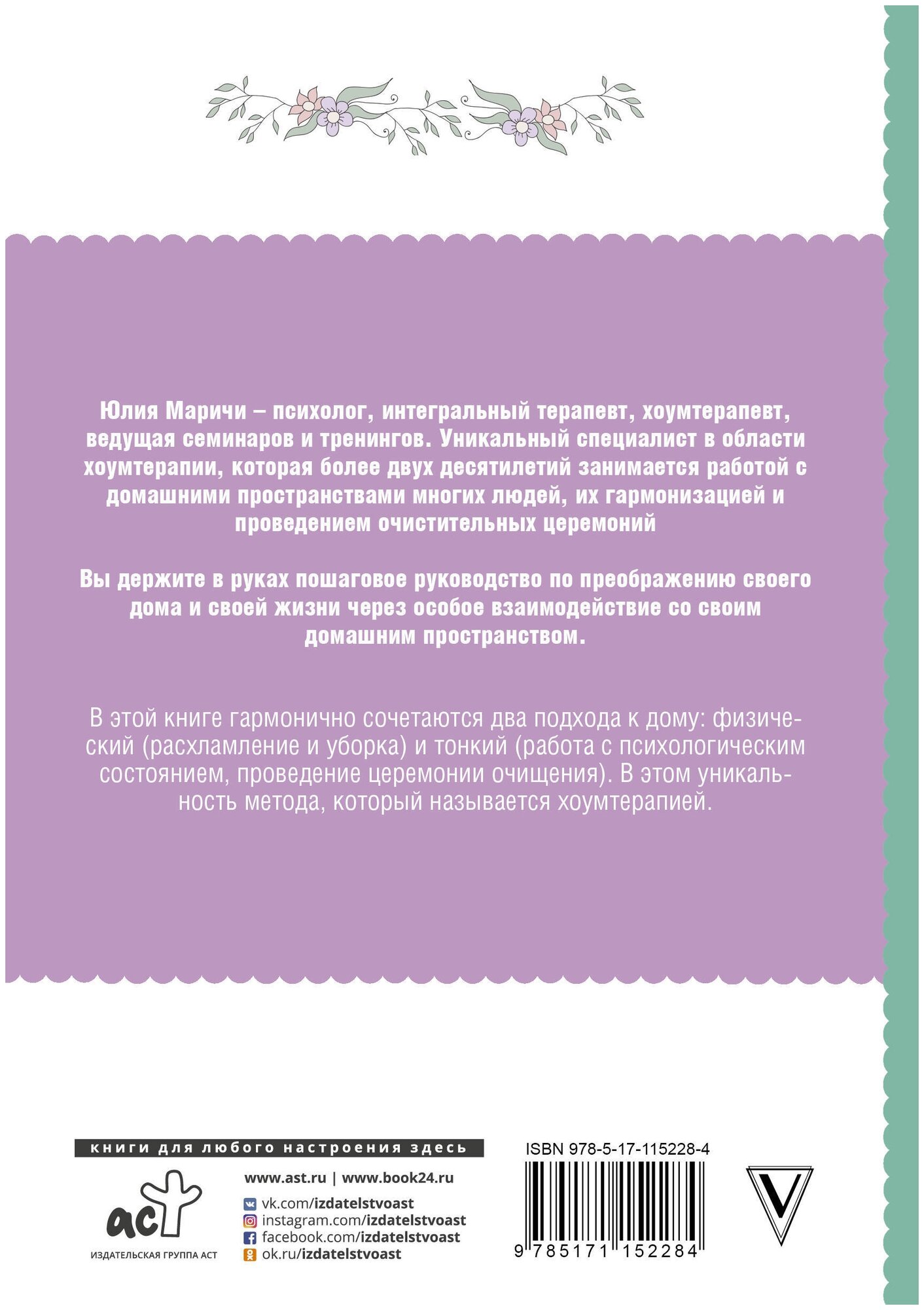 В этой книге гармонично сочетаются два подхода к дому: физический (расхламление и уборка) и тонкий (работа с психологическим состоянием, проведение церемонии очищения). В этом уникальность метода, который называется хоумтерапией.