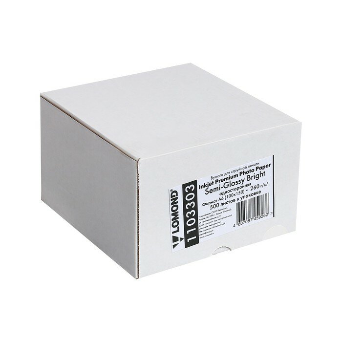 Полуглянцевая ярко-белая (Semi Glossy Bright) микропористая фотобумага для струйной печати, 10x15, 260 г/м2, 500 листов.