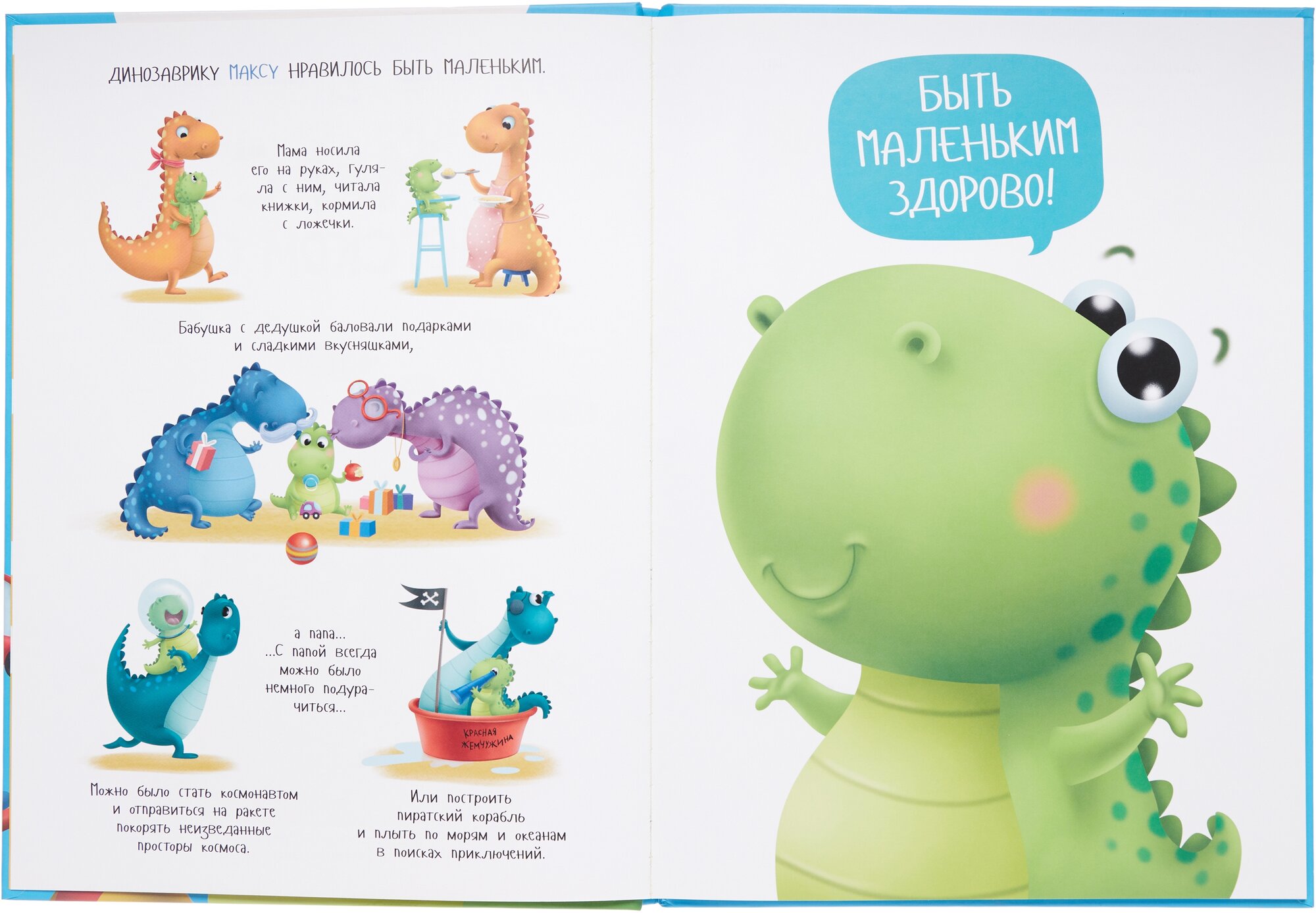 Отличная книга для маленьких любителей динозавров, а также мам, чьи детишки в скором времени отправятся в детский сад. Мы купили книгу как раз в период адаптации к саду, дочь очень болезненно воспринимала тему расставания с мамой. Мы почти каждый вечер читали про Макса, дочка сама просила прочитать именно ее. Нам почти 3 года. В книжке содержатся специальные выноски с добрыми советами для малышей. Рекомендуем к покупке!