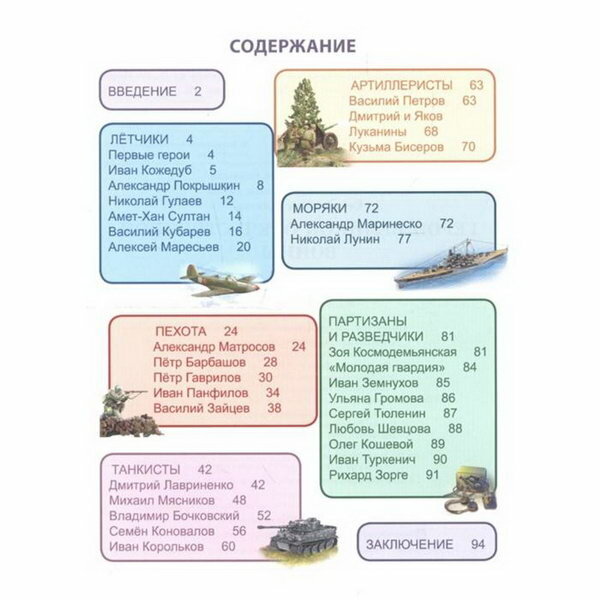 Очень понравилось данное издание! В книге очень красивые яркие иллюстрации, при этом достаточно текста с информацией. Текст читается легко, информация сжата, но достаточно для ребенка, интересно. Также рассказы о героях разбиты на группы (моряки, танкисты и т. д.), что очень удобно при подборе конкретного материала. Я бы рекомендовала данную книгу детям до 7 класса. Качество иллюстраций, обложки и оформления очень красивое и качественное. Рекомендую.