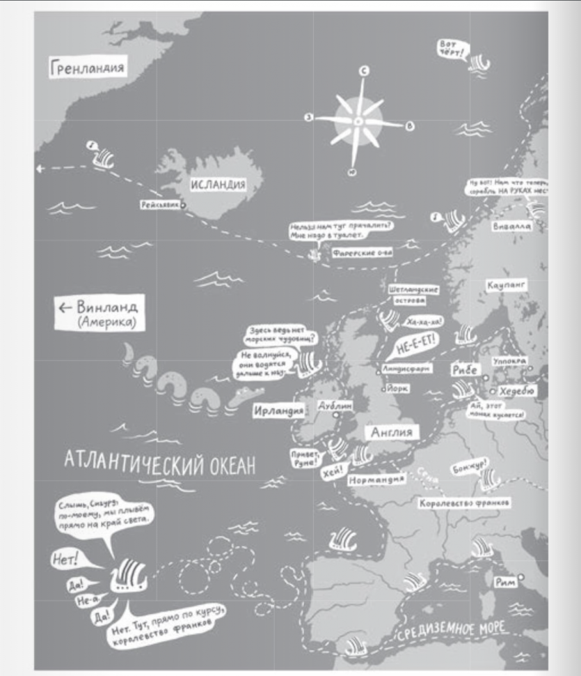 Эпоху викингов придумали (точнее придумали название) в 19 веке какие-то умные люди, а эпоха началась в 8 веке, видимо, когда скандинавские народы научились мастерить суда, на которых можно было добраться до новых земель (даже до Америки) в поисках богатства и, отчасти (по мнению самого автора), чтобы удовлетворить любопытство. Даже легендарный Рюрик – основатель русского княжества – был приглашен в Киев из Руслагена (местечка на западе Швеции).