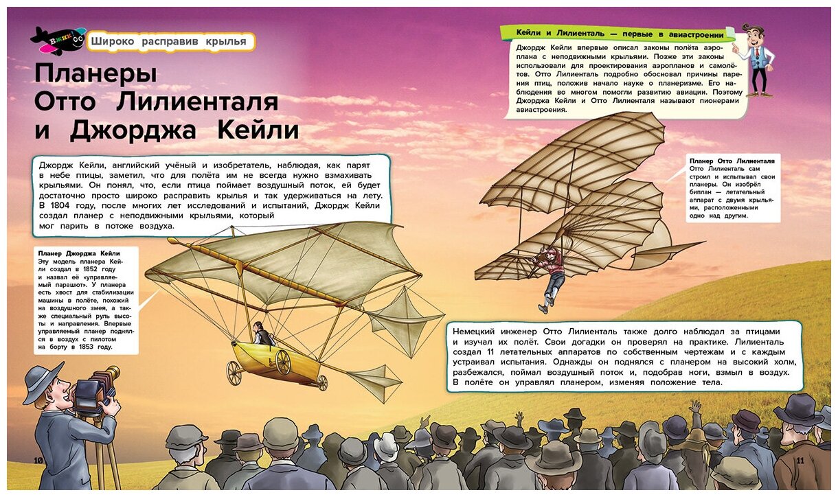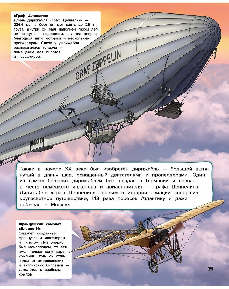 .Эта книга - просто маленькая энциклопедия летательных аппаратов, своего рода путеводитель по истории авиации. Человек с древних времён мечтал взлететь в небо, для нас эта мечта стала реальностью, но путь к её воплощению был долог и тернист. Сколько открытий и экспериментов нужно было совершить, чтобы подняться в воздух! Что за машины бороздили небо до современных лайнеров и истребителей? Кем были первые пассажиры воздушного шара? Что такое орнитоп и винтокрыл? Обо всём этом ты узнаешь из нашей книги.