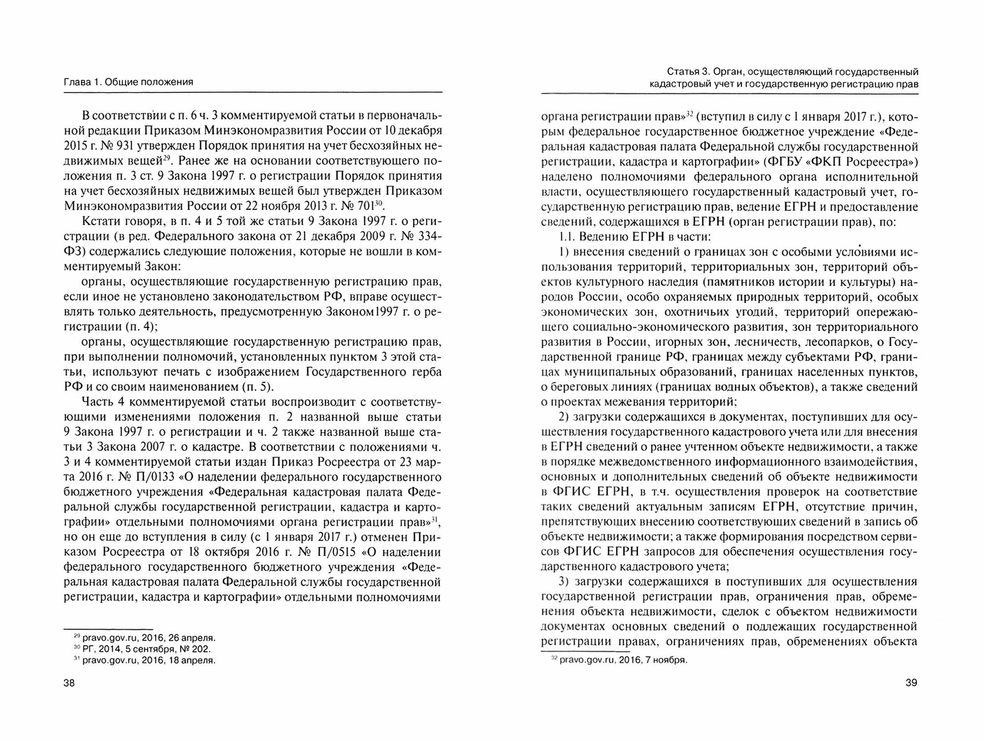 В книге дан постатейный комментарий к Федеральному закону от 13 июля 2015 г. № 218-ФЗ "О государственной регистрации недвижимости" в редакции внесенных в него изменений, в т.ч. Федеральными законами от 25 декабря 2018 г. № 478-ФЗ и от 27 декабря 2018 г. № 538-ФЗ. Подробно рассмотрены состав и правила ведения Единого государственного реестра недвижимости (ЕГРН), порядок осуществления государственного кадастрового учета и государственной регистрации прав, порядок исправления ошибок, содержащихся в ЕГРН, порядок предоставления сведений, содержащихся в ЕГРН, особенности правового статуса государственного регистратора прав, ответственность органа регистрации прав и государственного регистратора прав.