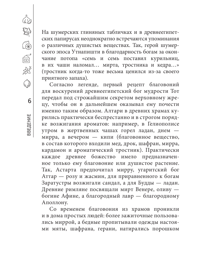 Небольшая по формату и количеству страниц книга, но достаточно интересна своим неоднозначным материалом. Данную книгу нужно всегда держать под рукой, чтобы в любой момент можно было определить какой запах и как он действует на человека. Книга-находка для повседневной и современной жизни, которая так насыщена разными ароматоми. Конечно лечение возможно только при помощи натуральных ароматов, а не искусственных. Покупкой очень довольна.