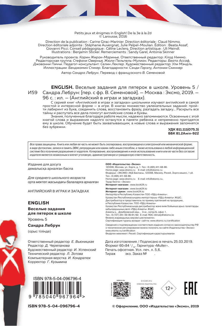 English. Веселые задания для пятерок в школе. Уровень 5 (Лебран Сандра); ООО "Издательство "Эксмо", 2019