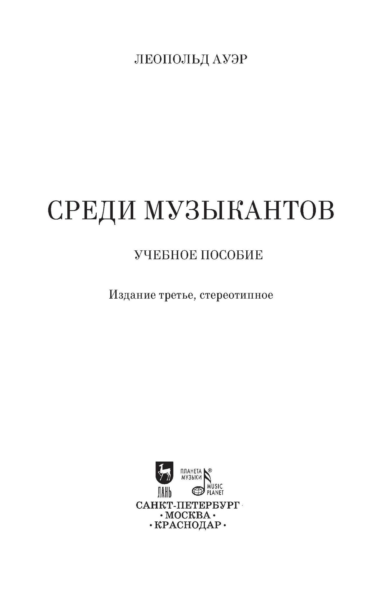 Среди музыкантов. Учебное пособие (Ауэр Леопольд); Планета музыки, 2019
