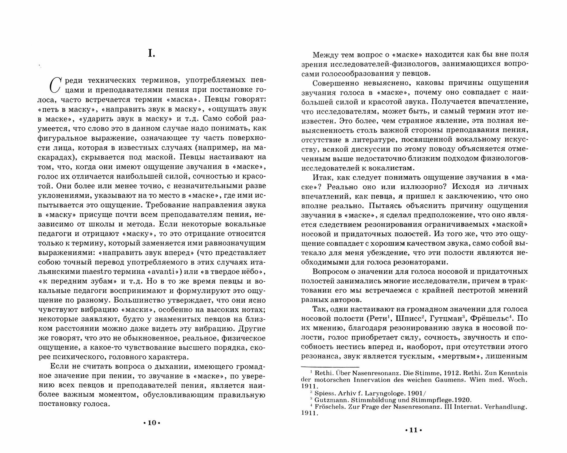 Предлагаемое издание дает много ценного материала, который не останется без влияния на конечное решение проблемы правильной постановки голоса и на выявление причин столько частых профессиональных болезней у певцов.