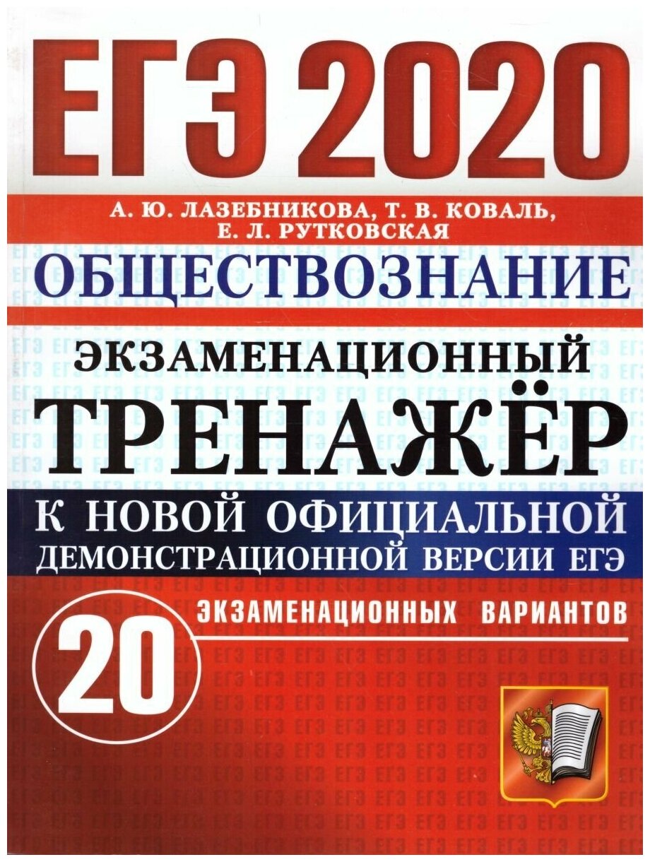 ЕГЭ 2020. Обществознание. Экзаменационный тренажёр. 20 экзаменационных вариантов (Лазебникова Анна Юрьевна, Рутковская Елена Лазаревна (соавтор), Коваль Татьяна Викторовна (соавтор)); Экзамен, 2020