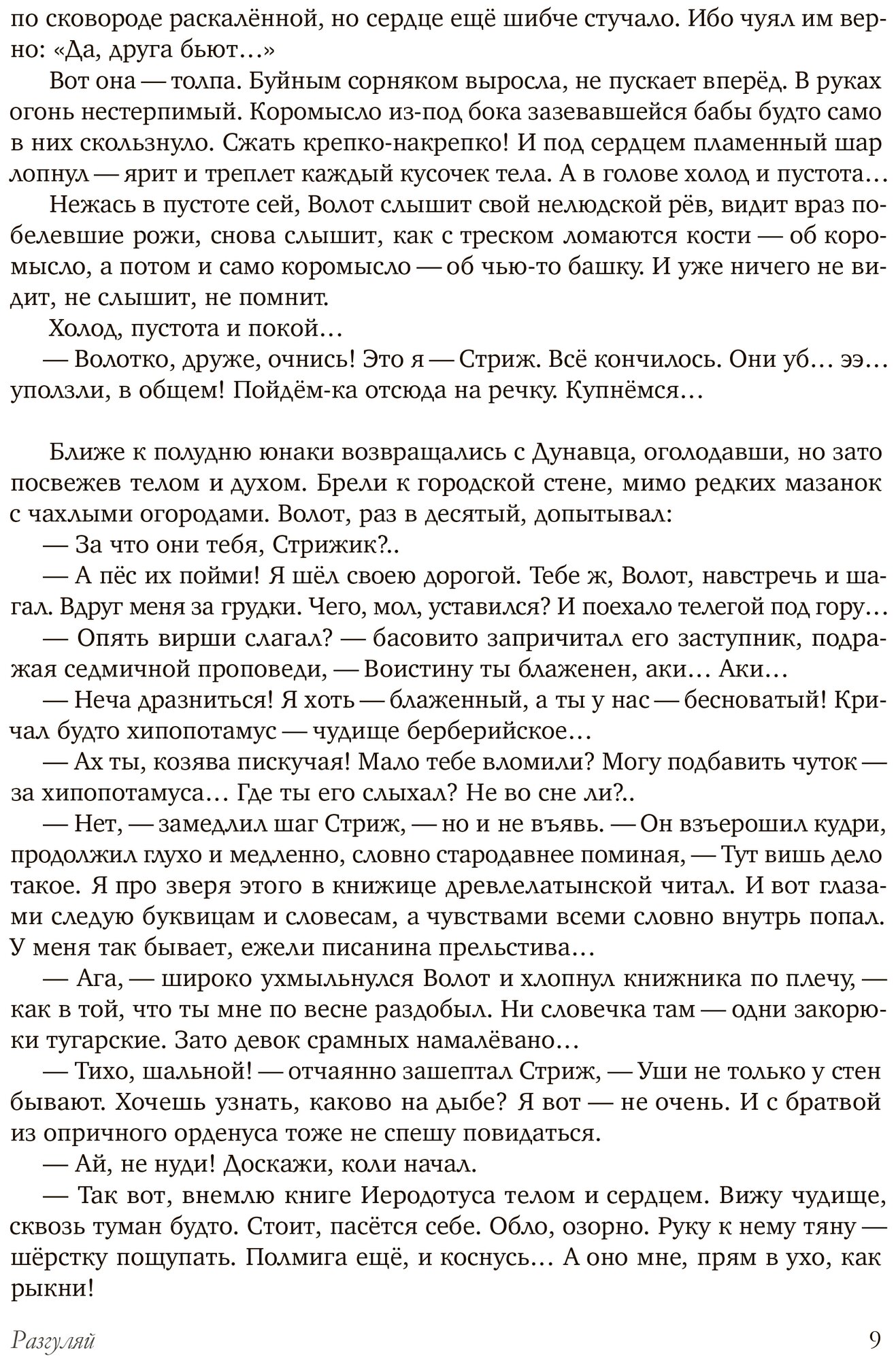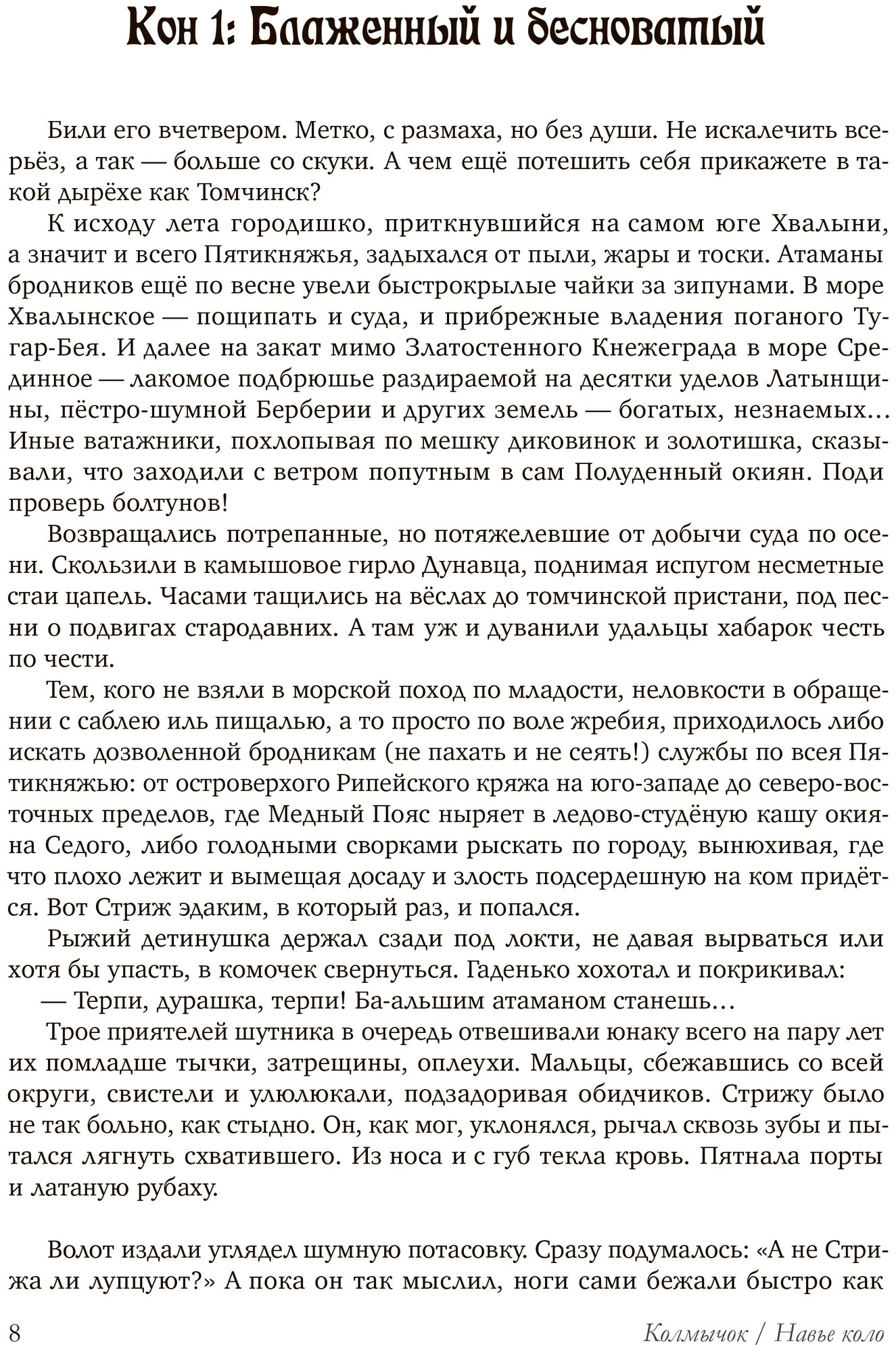 Умопомрачительный роман. Книга стала для меня настоящим открытием. Сюжет лихо закручен, герои яркие, выпуклые, и они развиваются. Волот – забияка-берсерк с непознанной тьмой внутри. Стриж – поначалу забитый виршеплет, который постепенно овладевает тайными знаниями, постигает таинства и учится управлять жизненной силой, живой. Язык сочный, и при том, что часто используются слова из старославянского языка, это работает на атмосферу созданного автором мира, но не затрудняет восприятия.