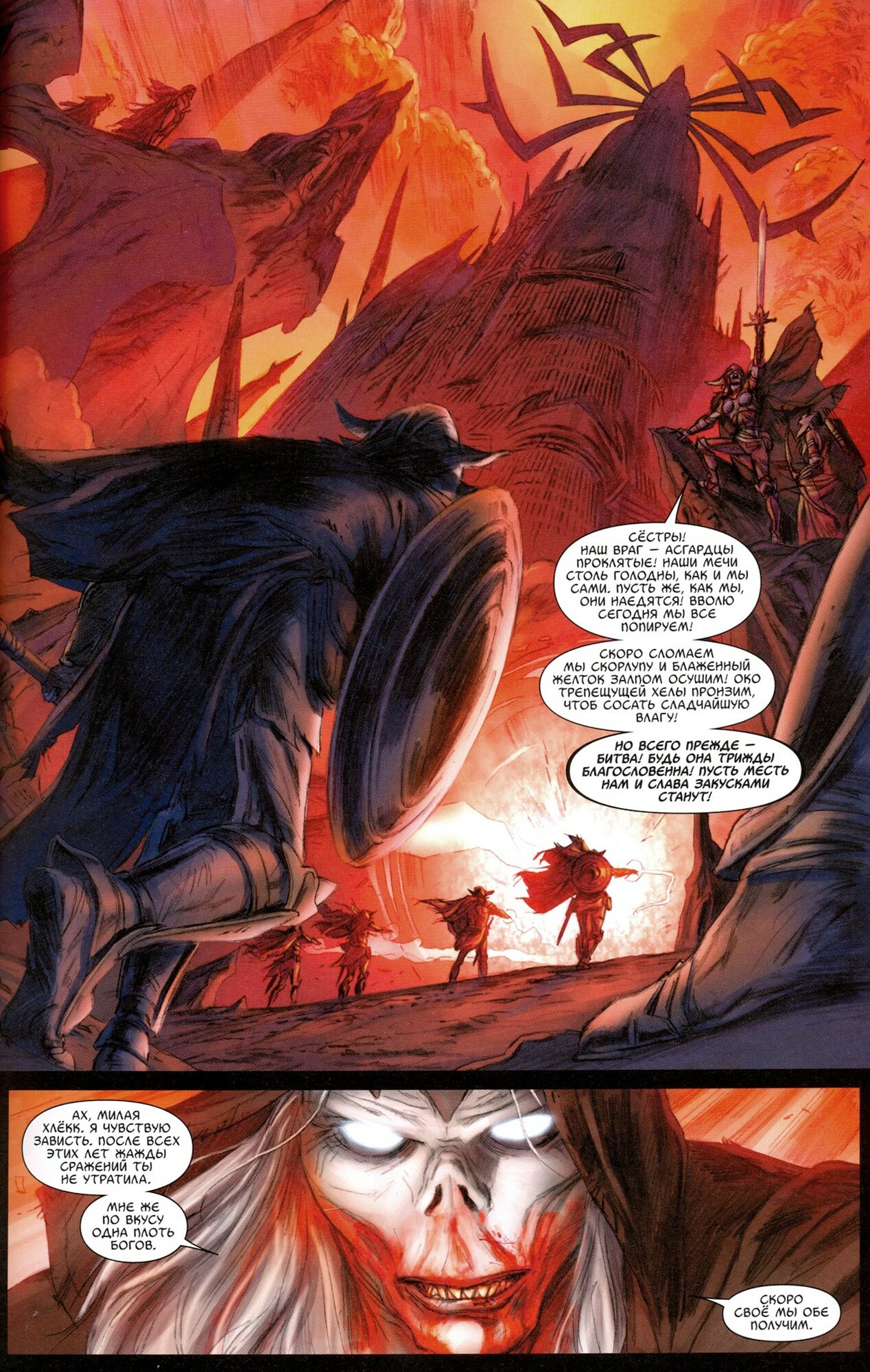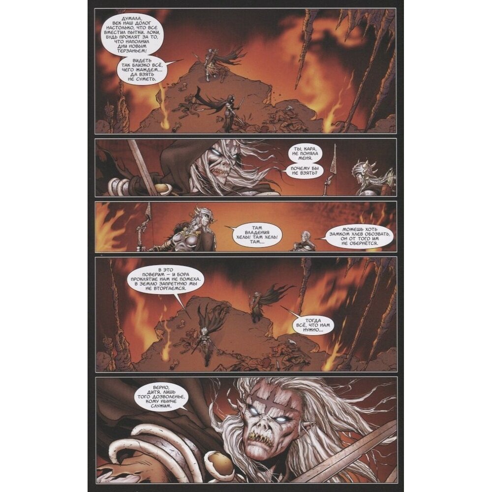 Продолжение арки Тора, и конечно же всем кто собирает всю коллекцию о нём, к покупке обязателен, первое же знакомство с этого комикса не рекомендую никак, ведь как одиночный отдельный продукт, комикс будет совершенно непонятен. Итак, комикс начинается там, где заканчиваются приключения Тора в прошлой книге, с кознями Дума покончено, убытки большие, но Тору нужно, как говорится, слетать в ад и обратно, решить некие вопросы связанные с Хелой, а точнее даже помочь ей, утерев нос демоническим шестёркам. Рисунок в этой части просто изумительный, но читать достаточно тяжеловато из-за шрифта и специфического говора Тора. А вот другая история, после реалистичного рисунка первой половины книги, буквально раздражает своей попсовостью и больше подходит для комиксов детям 7-12 лет, и хоть эта история даёт толчок, который с грохотом взорвётся через несколько книг, благодаря рисунку она только раздражает. В целом это всё тот же Тор, и тем кто следит за его приключениями, комикс однозначно будет подарком.