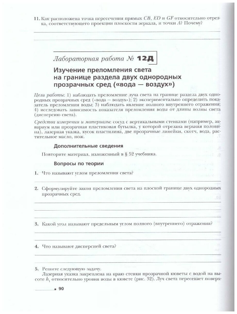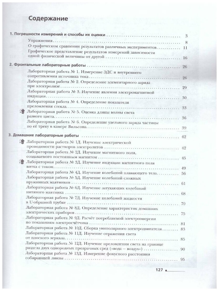 Тетрадь для лабораторных работ включает в себя фронтальные лабораторные работы и домашние лабораторные работы, материалы по измерению физических величин и оценке погрешностей измерений, другие справочные материалы.