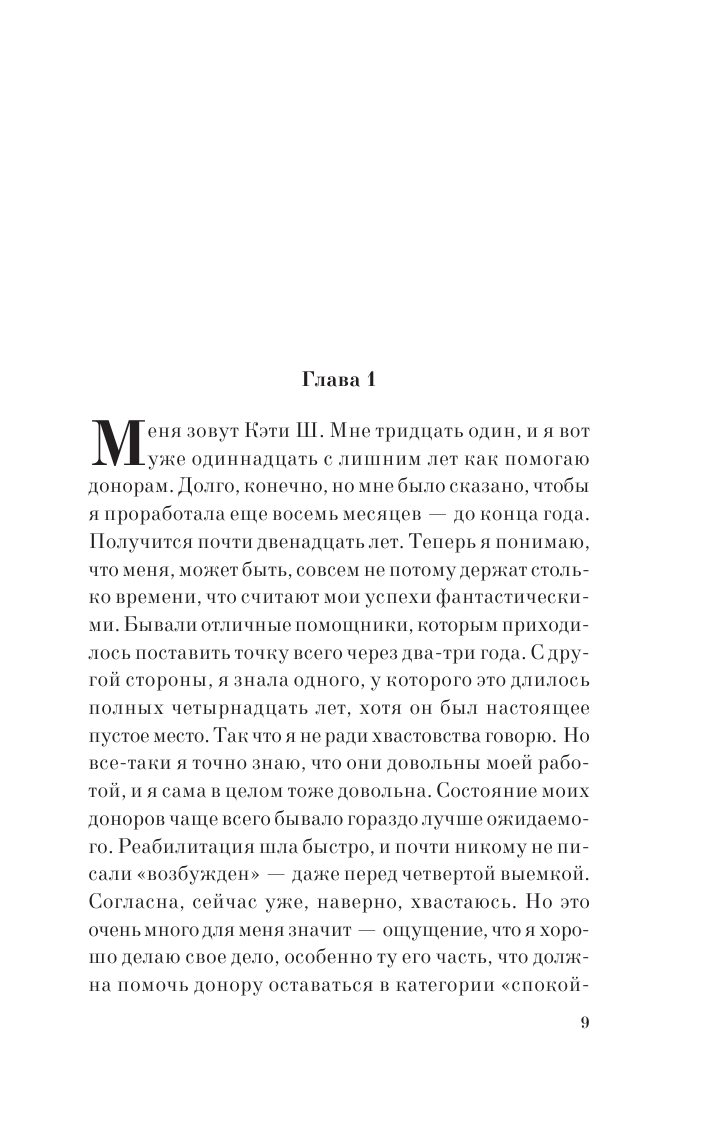 Тридцатилетняя Кэти вспоминает свое детство в привилегированной школе Хейлшем, полное странных недомолвок, половинчатых откровений и подспудной угрозы. Это роман-притча. Это история любви, дружбы и памяти. Это предельное овеществление метафоры "служить всей жизнью".