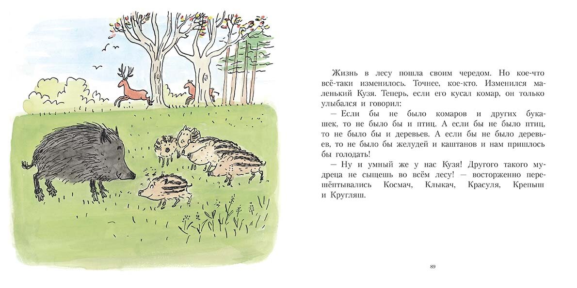 А у Элизабет Шу настоящие добротные детские сказки. Больше всего нам понравилась сказка про кабаненка Кузю. дада повод поговорить о взаимосвязанности всего в природе, о том, почему нужно бережно относиться к животным и насекомым, даже таким противным как комары:)))
