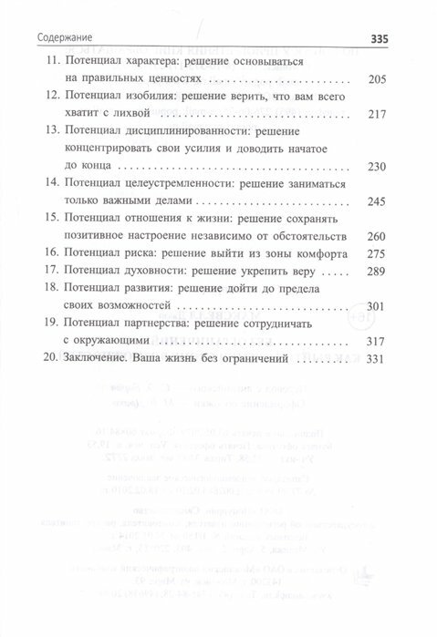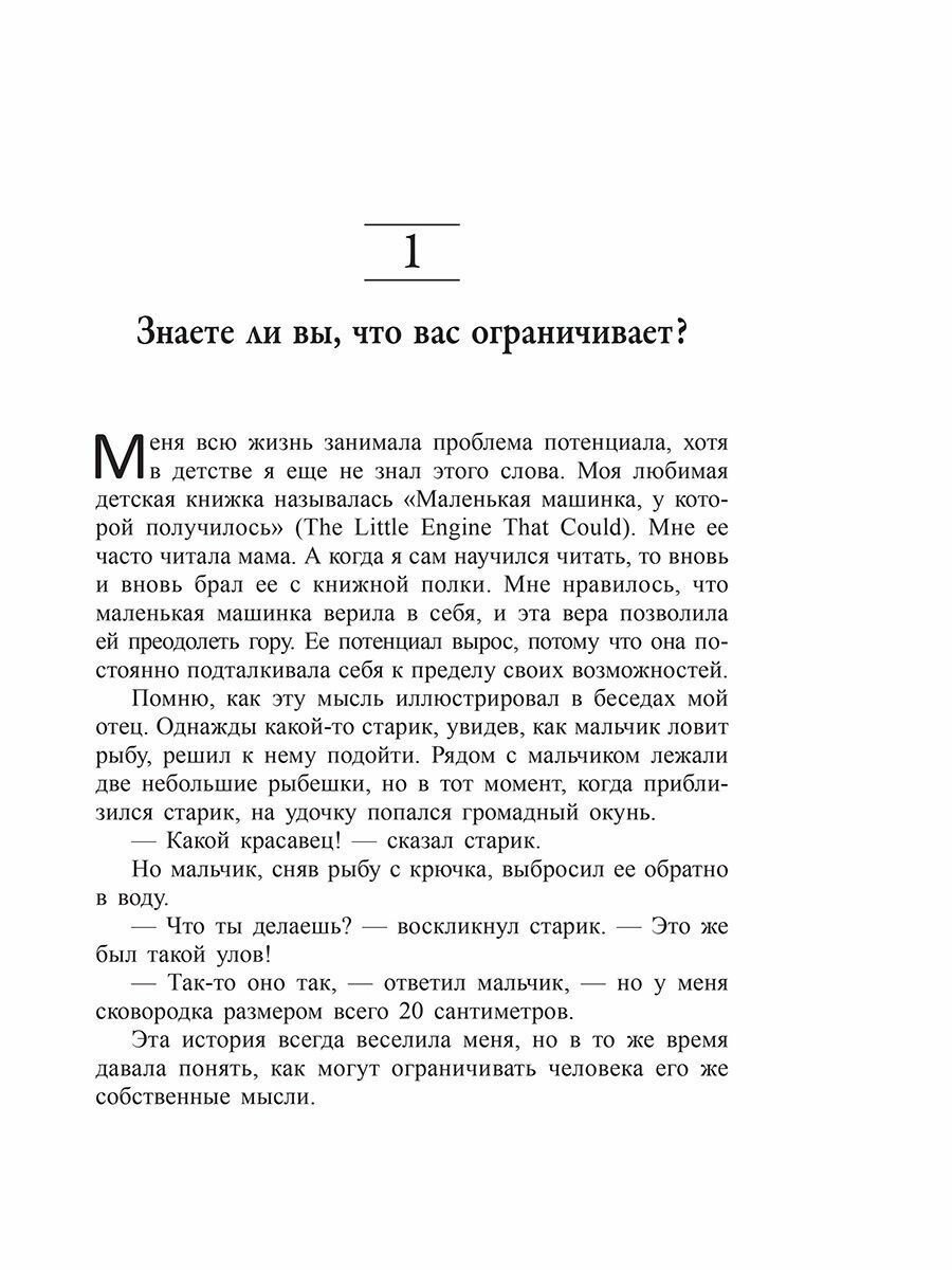 В своей новой книге Джон Максвелл выделяет 17 главных разновидностей потенциала. Какие-то качества даны нам от рождения: энергичность, творческие наклонности, лидерский дух. Другие, например отношение к жизни, характер, целеустремленность, больше зависят от принимаемых нами решений. Максвелл анализирует все эти виды потенциала и дает четкие советы по их развитию. Когда вы устраните любые установленные рамки, ваша жизнь станет гораздо ярче и насыщеннее.