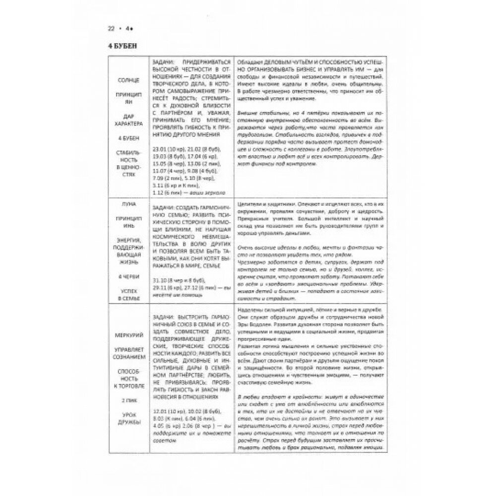 Книга будет интересна тем, кто хорошо знаком с картами Любви и другими работами Кемпа, Моррела, системой 52 карт. в книге приведены хорошие описания задач карт рождения. Но есть большие "но". В книге ооочень много ошибок. Надо хорошо знать систему, чтобы находить их.