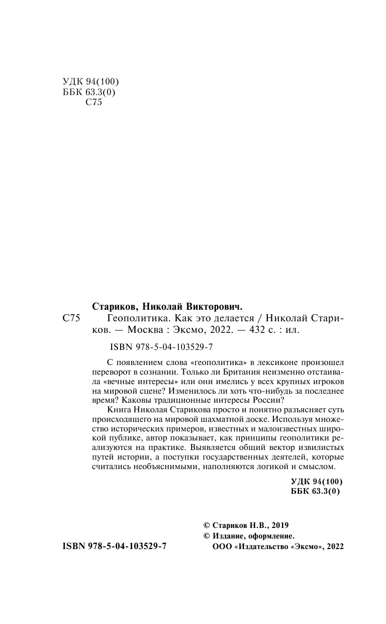 Геополитика. Как это делается (Николай Викторович Стариков); Эксмо, 2022