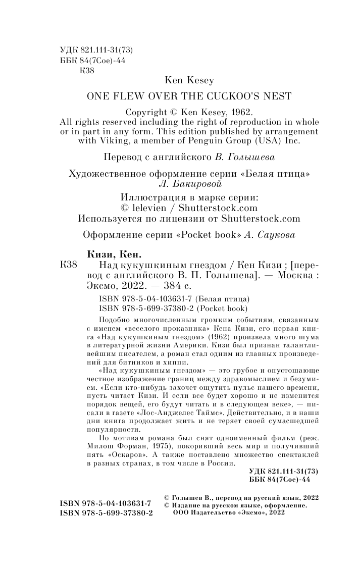 Книга: Над кукушкиным гнездом (Кен Кизи); Эксмо, Редакция 1, 2022
