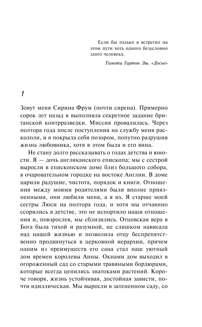 1972 год. Холодная война в разгаре. На Сирину Фрум, весьма начитанную и образованную девушку, обращают внимание английские спецслужбы. Им нужен человек, способный втереться в доверие к молодому писателю Томасу Хейли - он может быть им полезен. Сирена идеально подходит для этой роли. Кто же знал, что она не только начитанна, но и влюбчива и ее интерес к Хейли очень скоро перестанет быть только профессиональным.