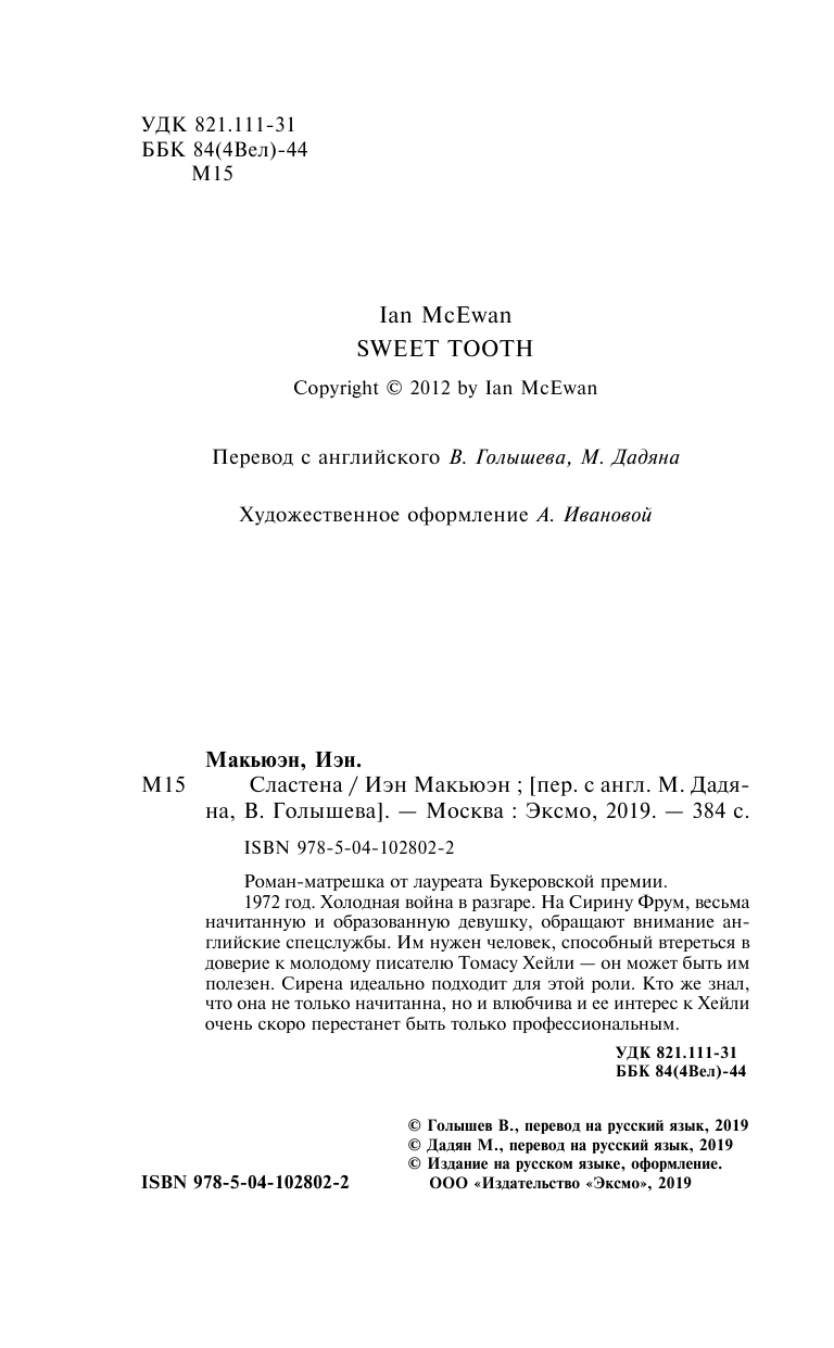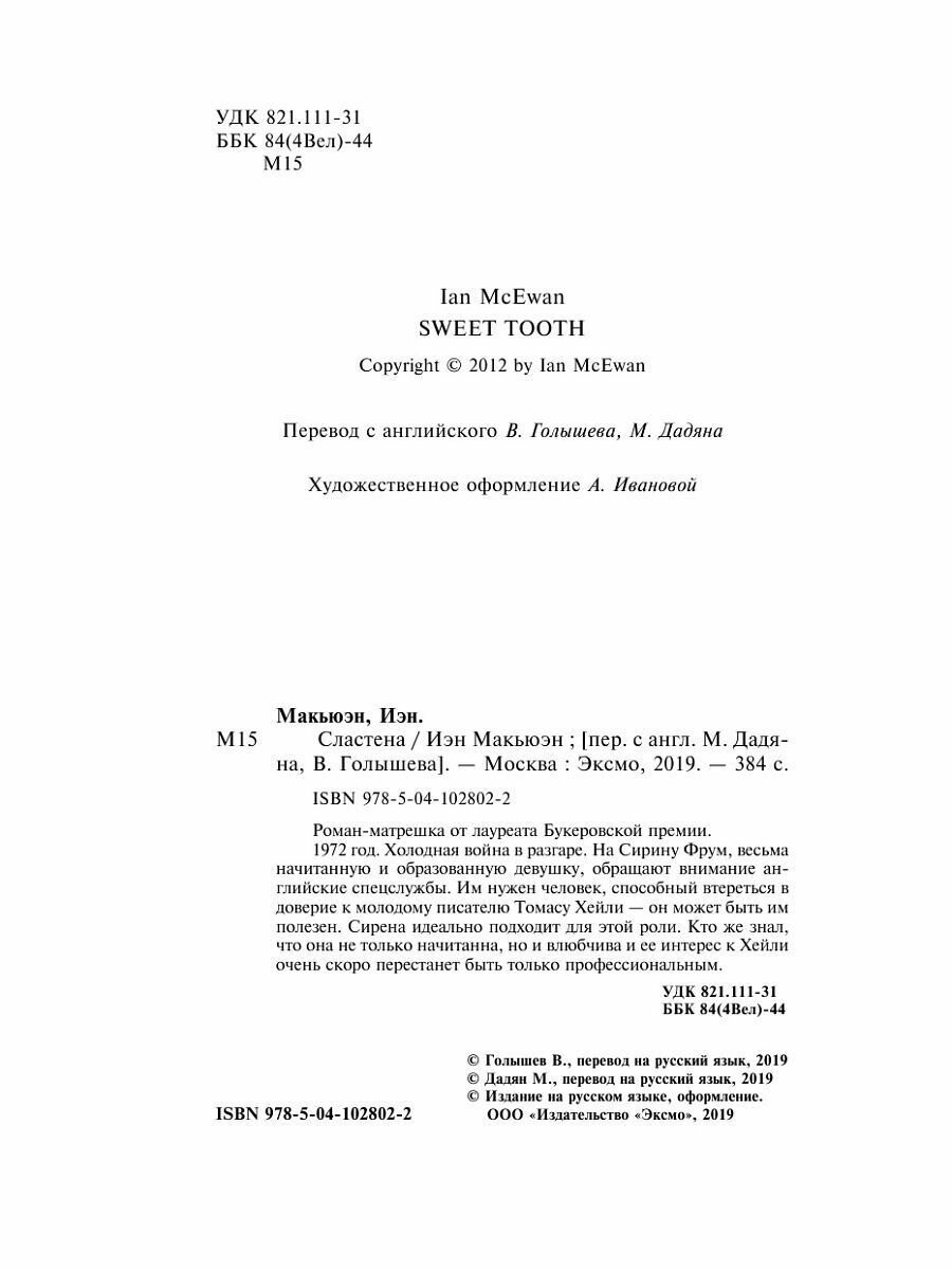 Книга: Сластена (Макьюэн И.); ООО "Издательство "Эксмо", 2019